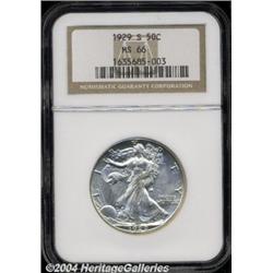 <B>1929-S<50C> MS66 NGC.</B></I> A surprising MS66 example of this seldom-seen issue. This piece is also well struck (for the date) with only slight softness evident on Liberty's hand. Brilliant throughout, the mint luster is bright and highly frosted, and there are no noticeable abrasions on either side of this pristine Gem. Population: 28 in 66, 2 finer (7/04).<BR><I>From The Dr. Frank Lanza Collection of Walking Liberty Half Dollars.</B></I> <BR><BR><B>Important notice:</B> Heritage usually auctions material at the rate of 200-250 lots per hour. On some occasions eBay Live bid software or the Internet may not be able to keep up with the pace of the auction. We recommend placing a realistic absentee bid now as insurance to avoid disappointment. Occasionally the auctioneer may eliminate or reject an eBay Live bid, and the auctioneer may also reopen a lot after the close of the eBay live bidding (usually because we missed an audience bid), and may reject your bid even if it shows you as the winning bidder. By bidding via eBay Live, you agree that Heritage may award the lot to another bidder at its sole discretion under the circumstances described above or any other reasonable circumstances. Since eBay bids are not shown to us until we open the lot on the floor, we treat those bids just like floor bids. In most cases the floor responds before the eBay bid is presented to us, due to Internet lag time, so for consistency we have made it a policy that floor bids are always considered first over tie eBay live bids. Also please note that all Heritage lots purchased through eBay Live carry a 20% Buyer's Premium. Please make sure you read the Terms and Conditions before you bid. </span></font></tr></table></td></tr></table>