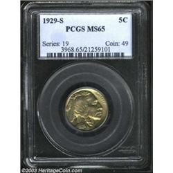 1929-S 5C MS65 PCGS. The fields have apple-green color, while the highpoints of the devices have lavender hues. A beautifully preserved Gem with good luster and a reasonable strike. Important notice: We expect to be auctioning lots at the rate of 200-250 per hour. On occasion eBay live bid software cannot keep up with the pace of the auctions where 4-5 lots per minute can hammer down, so we recommend that you place a realistic absentee bid now as insurance to avoid disappointment. Also please note that all Heritage/CAA lots purchased through eBay Live carry a 20% Buyer's Premium. Please make sure you read the Terms and Conditions.