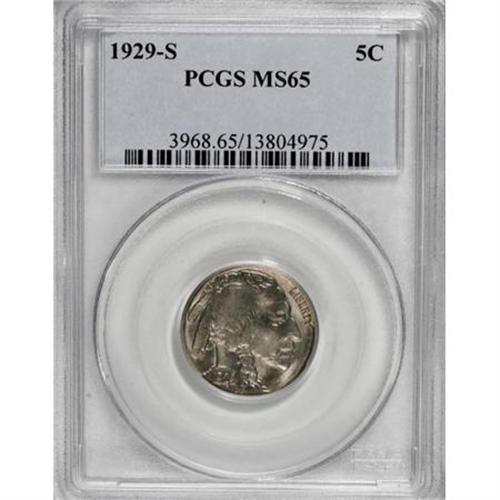 <B>1929-S 5C MS65 PCGS.</B></I> PCGS Population (393/157). NGC Census: (153/44). Mintage: 7,754,000. Numismedia Wsl. Price for NGC/PCGS coin in MS65: $400. (#3968)<BR><BR><B>Coin Engraver:</B> James E. Fraser<BR><BR><b>Shipping:</b> Coins & Currency (<a target="_blank" href="http://www.heritageauctions.com/common/shipping.php">view shipping information</a>)