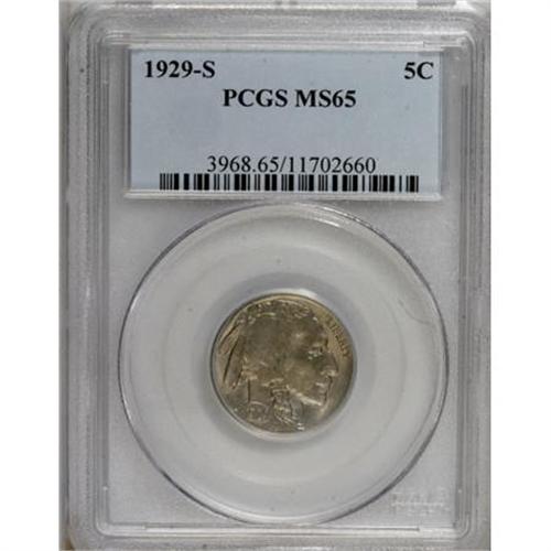 <B>1929-S 5C MS65 PCGS.</B></I> PCGS Population (399/160). NGC Census: (153/44). Mintage: 7,754,000. Numismedia Wsl. Price for NGC/PCGS coin in MS65: $400. (#3968)<BR><BR><B>Coin Engraver:</B> James E. Fraser<BR><BR><b>Shipping:</b> Coins & Currency (<a target="_blank" href="http://www.heritageauctions.com/common/shipping.php">view shipping information</a>)