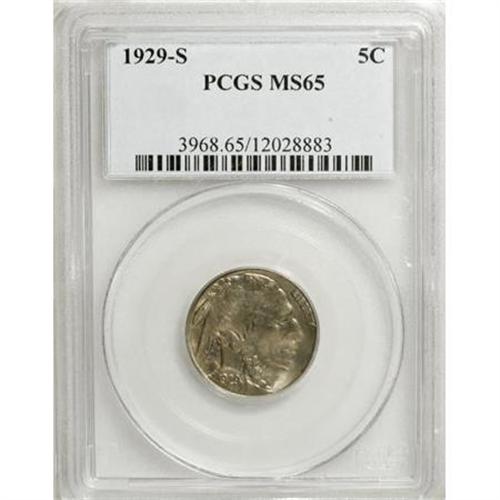 <B>1929-S 5C MS65 PCGS.</B></I> PCGS Population (401/163). NGC Census: (154/46). Mintage: 7,754,000. Numismedia Wsl. Price for NGC/PCGS coin in MS65: $400. (#3968)<BR><BR><B>Coin Engraver:</B> James E. Fraser<BR><BR><b>Shipping:</b> Coins & Currency (<a target="_blank" href="http://www.heritageauctions.com/common/shipping.php">view shipping information</a>)