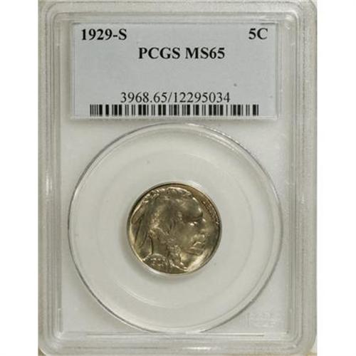 <B>1929-S 5C MS65 PCGS.</B></I> PCGS Population (410/158). NGC Census: (158/47). Mintage: 7,754,000. Numismedia Wsl. Price for NGC/PCGS coin in MS65: $400. (#3968)<BR><BR><B>Coin Engraver:</B> James E. Fraser<BR><BR><b>Shipping:</b> Coins & Currency (<a target="_blank" href="http://www.heritageauctions.com/common/shipping.php">view shipping information</a>)