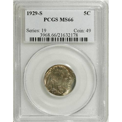 1929-S 5C MS66 PCGS. Sharply struck, save for a few of