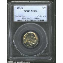 1929-S 5C MS66 PCGS. Shimmering satin luster is overlaid in golden tinged iridescence. The sharply i
