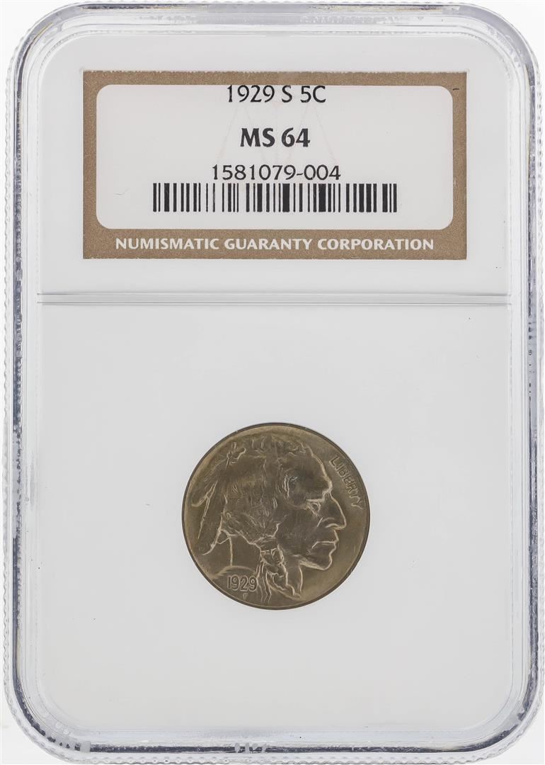 One 1929-S Buffalo Nickel Coin PCGS MS64. PCGS Graded.