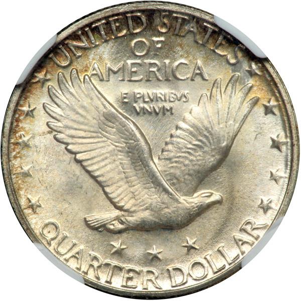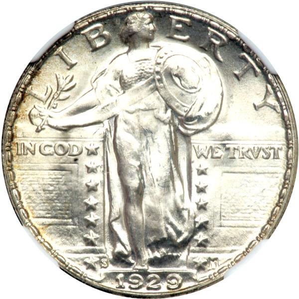 1929-S Liberty Standing Quarter Dollar. NGC graded MS-67 Full Head. Well struck with a hint of light tone. Mostly untoned. Beautifully fresh and bright at the main devices out to the periphery with booming mint frost exploding into your field of vision. A well-struck and thoroughly enjoyable piece, among the finest survivors of this popular Standing Liberty type, and essentially free of impairments. The Full Head is important as well to buyers of top-quality pieces. Pop 20; 7 finer.