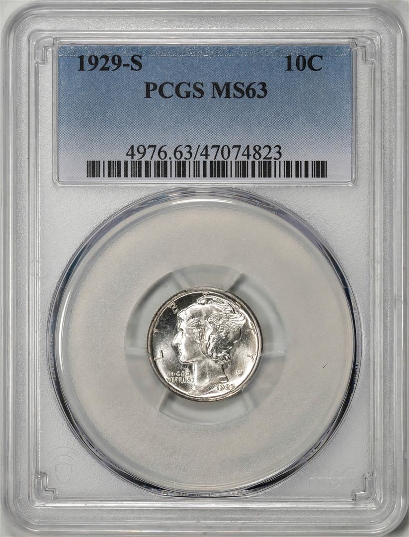 One 1929-S Mercury Dime Coin PCGS MS63. PCGS Graded.