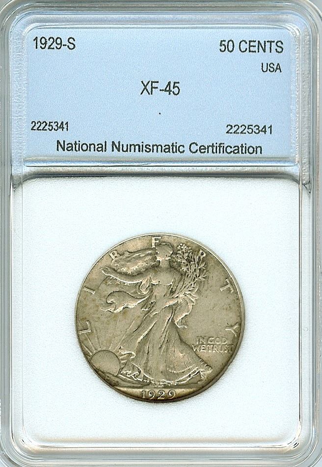 1929-S WALKING LIBERTY SILVER 50 CENTS NNC XF-45