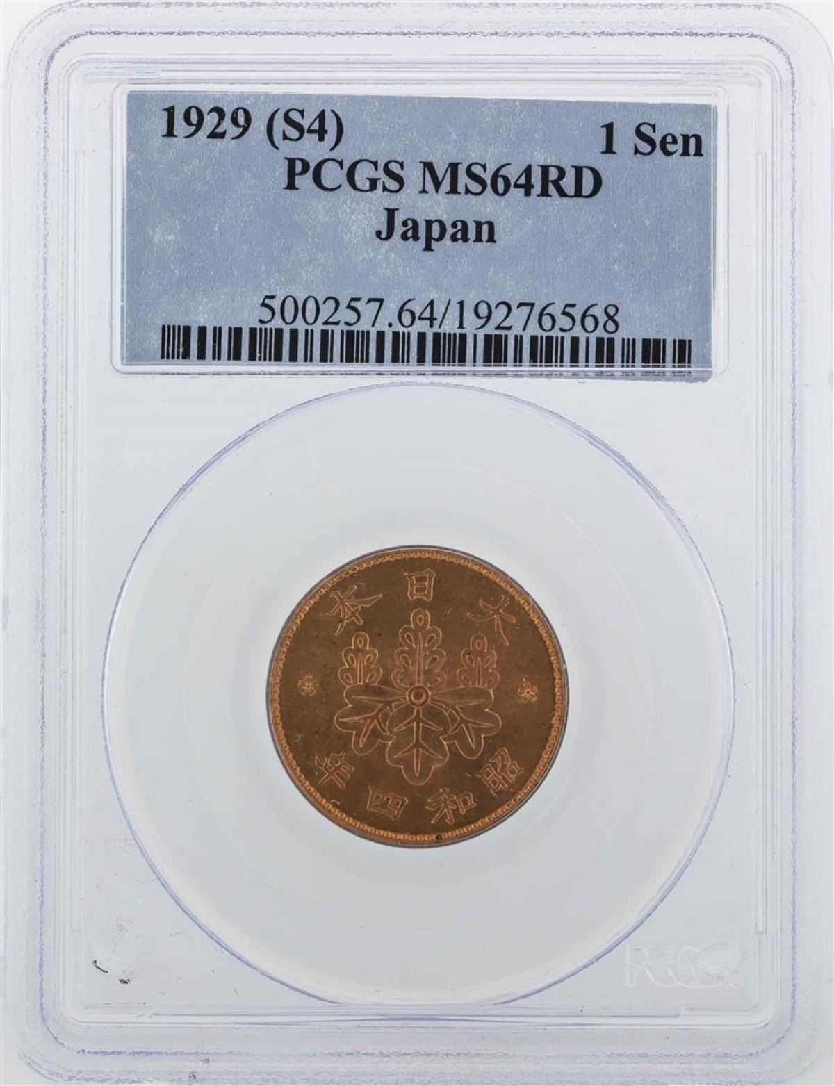 One 1929 (S4) Japan 1 Sen Coin PCGS MS64RD. PCGS Certified.