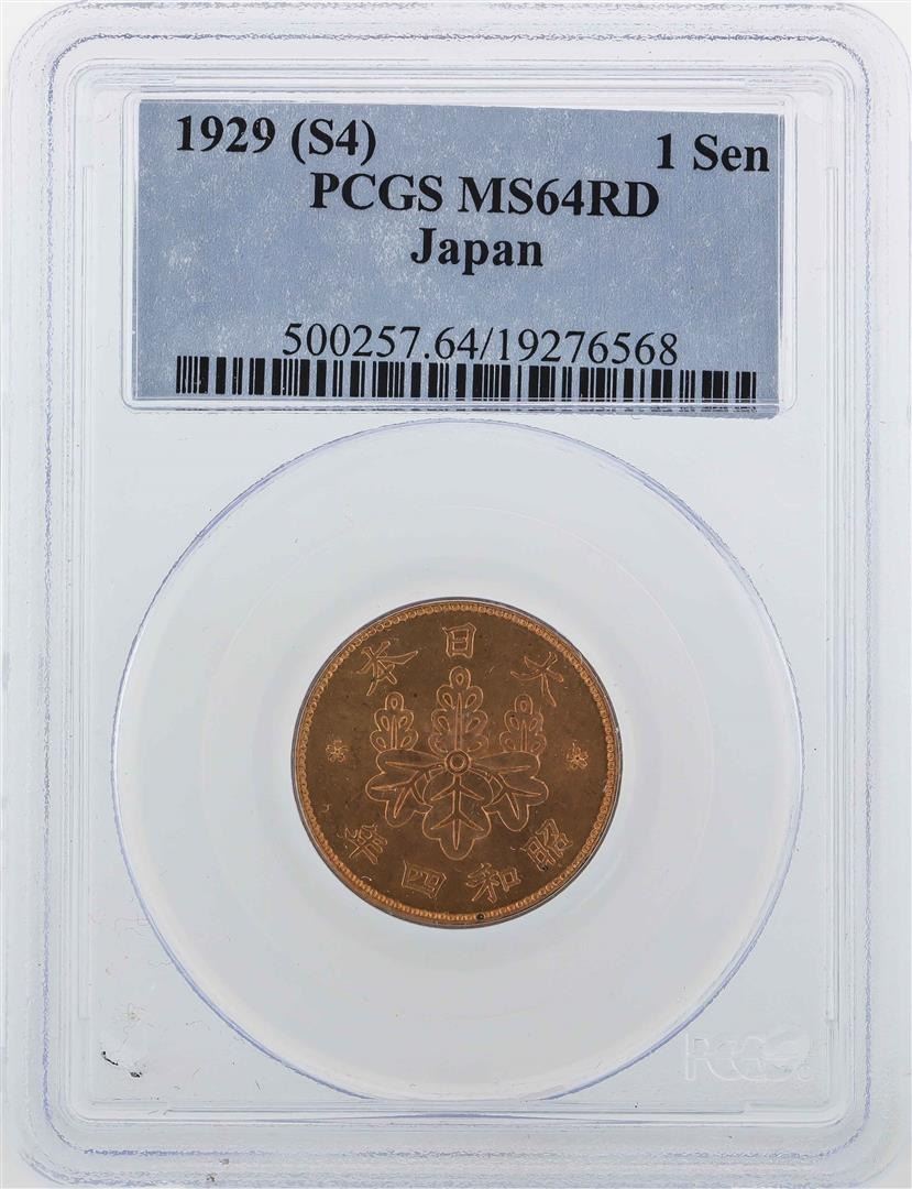 One 1929 (S4) Japan 1 Sen Coin PCGS MS64RD. PCGS Certified.