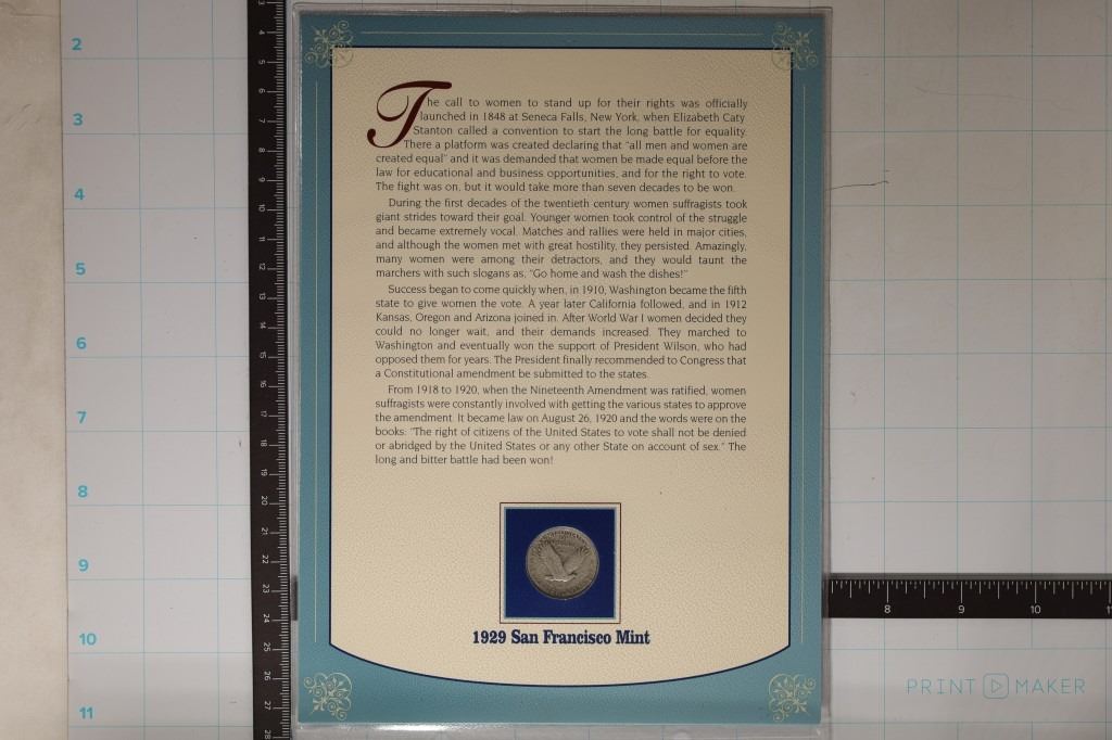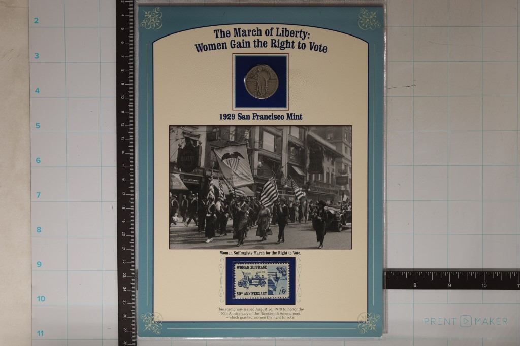 WITH 6 CENT UNCANCELLED POSTAGE STAMP. "WOMAN GAIN THE RIGHT TO VOTE" IN PLASTIC SLEEVE