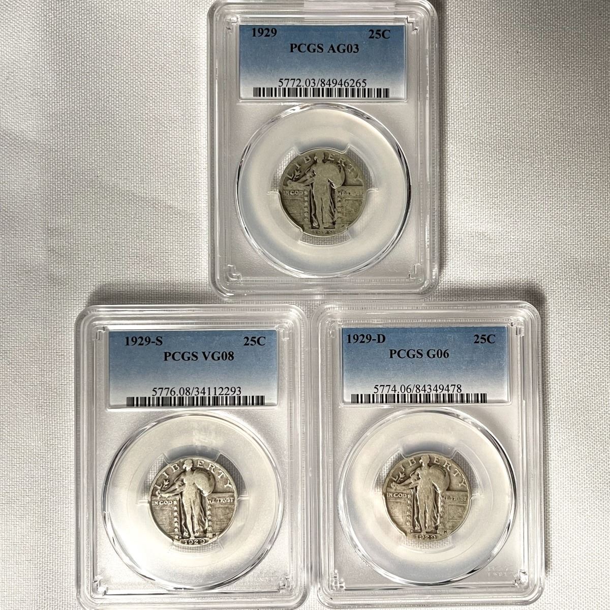1929 Set (3) Standing Liberty Quarter PCGS-VG8,