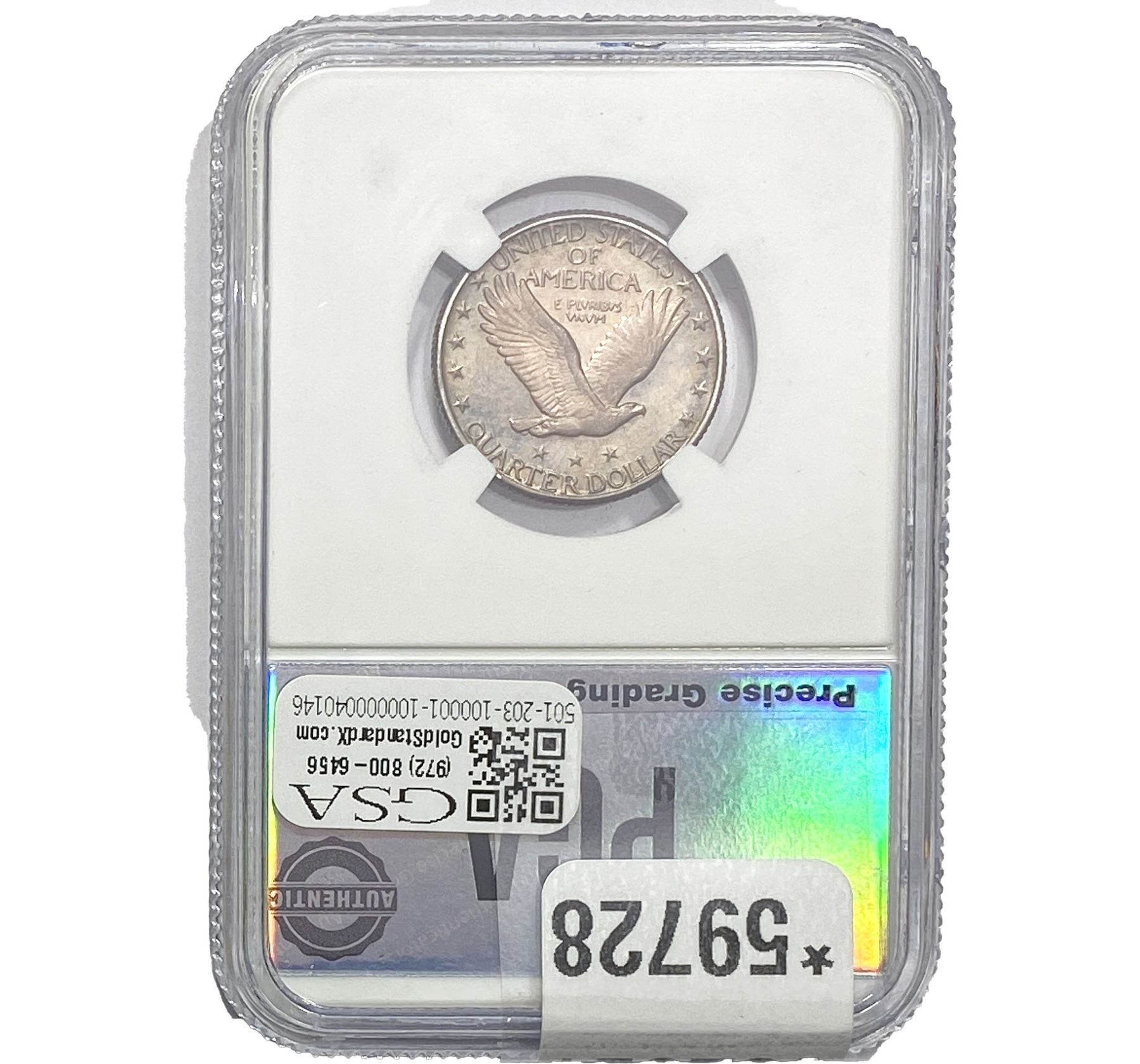 COINS AND CURRENCY LISTED IN GSA’S CATALOG AS GRADED AND ENCAPSULATED BY PCGS, NGC, ANACS, ICG, PCGS CURRENCY, PMG, PCGS BANKNOTE GRADING, CMC OR ANY OTHER THIRD-PARTY GRADING SERVICE ARE LIKEWISE SOLD “AS-IS” EXCEPT AS EXPRESSLY SET FORTH HEREIN. ALL THIRD-PARTY GRADING SERVICE GUARANTEES, INCLUDING AUTHENTICITY, ARE THE SOLE RESPONSIBILITY OF THE THIRD-PARTY GRADING SERVICE AND NOT WARRANTIES OR GUARANTEES OF GSA. BIDDERS SHOULD CONTACT THESE THIRD-PARTY GRADING SERVICES DIRECTLY WITH RESPECT TO ANY CLAIMS OR QUESTIONS THEY MAY HAVE CONCERNING THEIR GUARANTEES AND WARRANTIES. BIDDERS ACKNOWLEDGE AND AGREE THAT AUCTIONEER IS NOT BOUND BY OR LIABLE FOR ANY OPINION OR CERTIFICATION BY ANY THIRD-PARTY GRADING SERVICE. REMOVAL OF A PRODUCT FROM ITS PROTECTIVE CASING OR HOLDER OR ALTERATION OF ANY COIN HOLDER WAIVES ALL RIGHTS CONCERNING THE PRODUCT CONTAINED THEREIN.