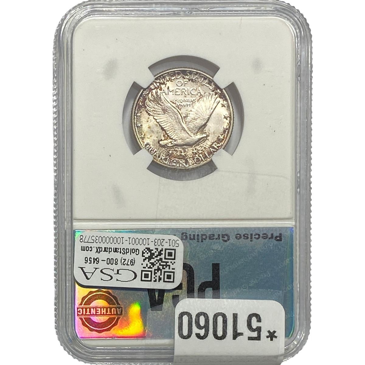e. Coins sold referencing a third-party grading service are sold “AS IS” without any express or implied warranty, except for a guarantee by GSA that they are genuine. Removal or alteration of the holder, voids all of Bidder’s claims concerning that Product. Certain warranties may be available from the grading services and Bidders are referred to them for further details: Numismatic Guaranty Corporation (NGC), PO Box 4776, Sarasota, FL 34230, www.ngccoin.com/services/writtenguarantee.asp; Professional Coin Grading Services (PCGS), PO Box 9458, Newport Beach, CA 92658, www.pcgs.com/guarantee.html; ANACS, 6555 S. Kenton St., Ste. 303, Englewood, CO 80111; and Independent Coin Grading Co. (ICG), 7901 East Bellview, Ave., Suite 50, Englewood, CO 80111.