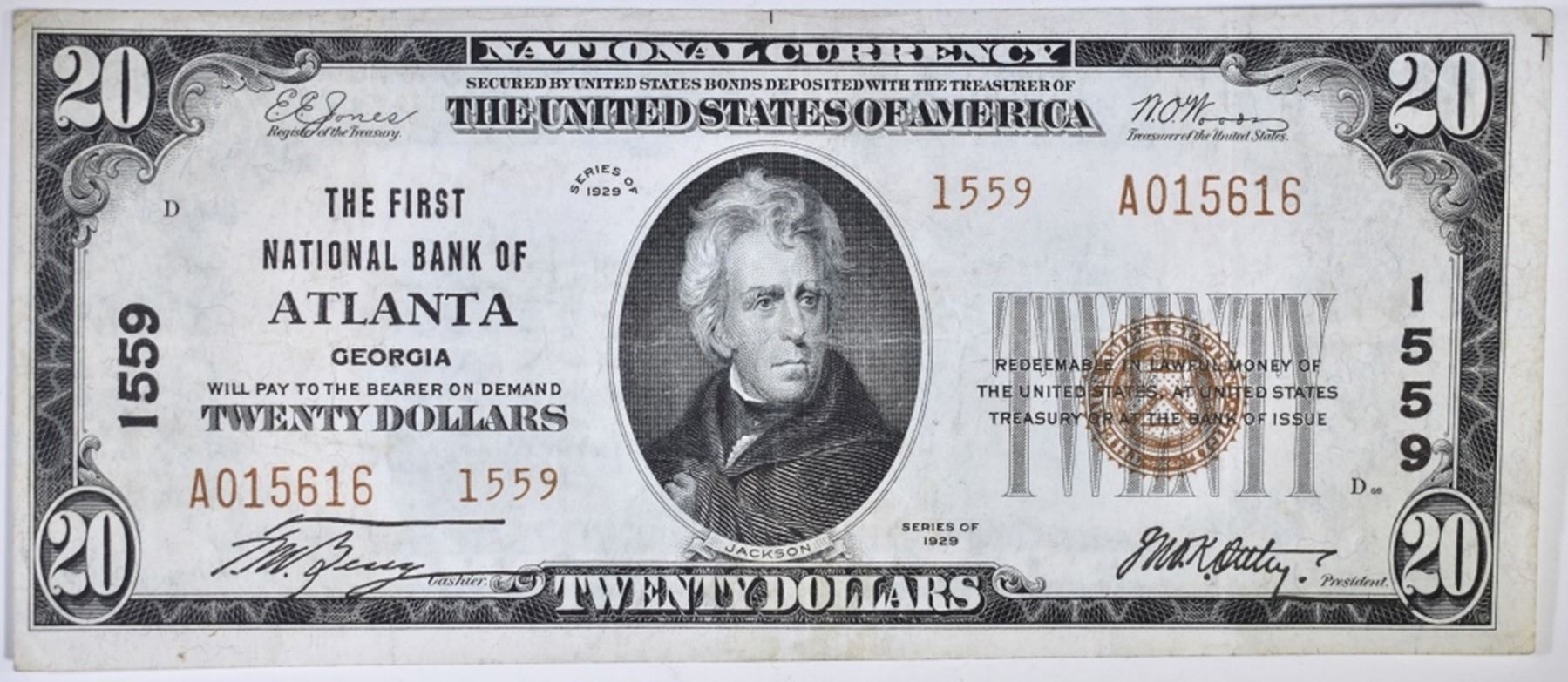 FIRST NATIONAL BANK OF ATLANTA VERY SCARCE GREAT MARGINS HIGHEST DENOMINATION