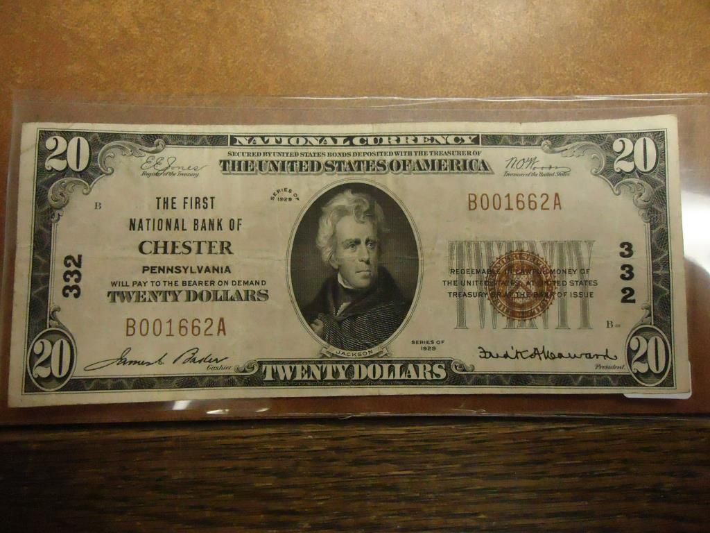 BANK OF CHESTER, PENNSYLVANIA, BROWN SEAL. WITH A FOUR DIGIT SERIAL NUMBER