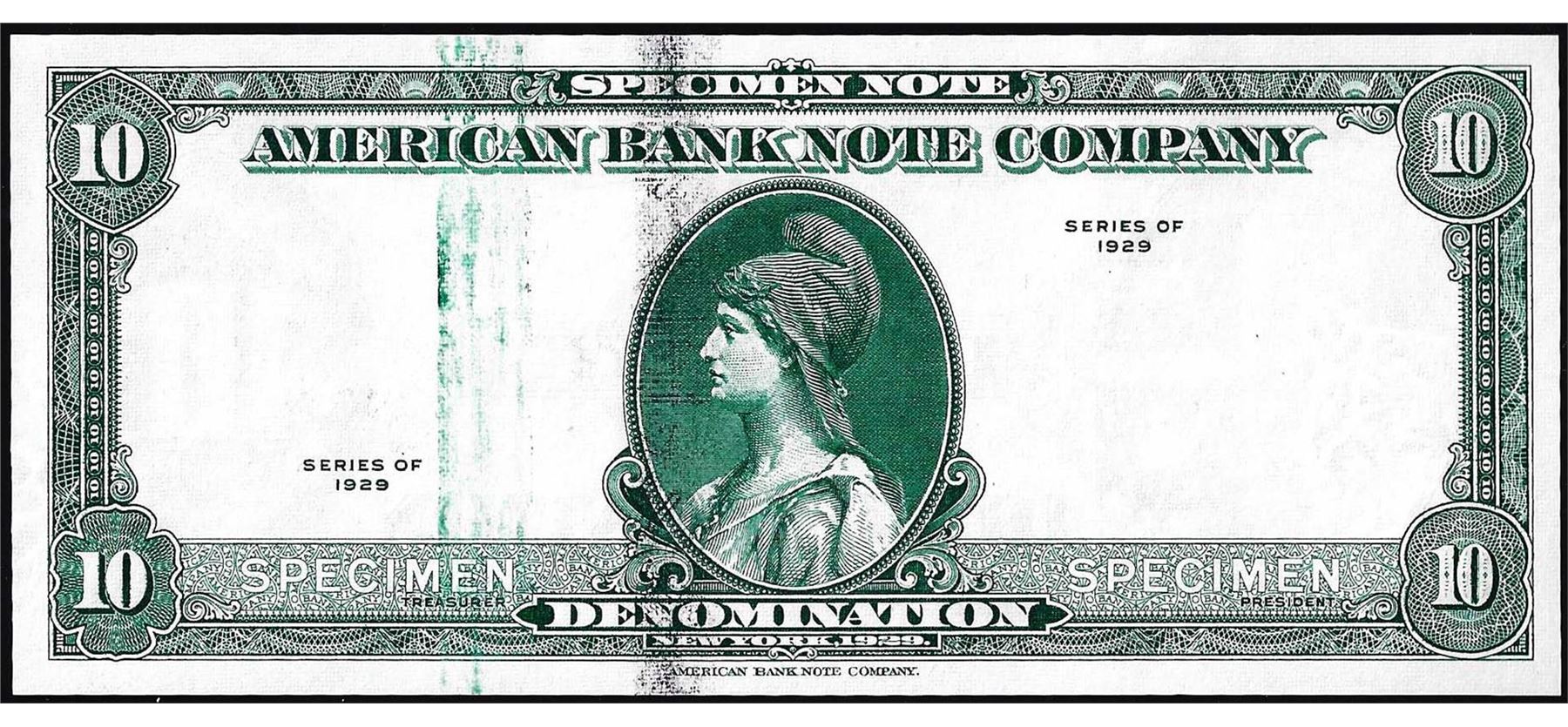 One 1929 Ten Unit American Bank Note Company Test Note.