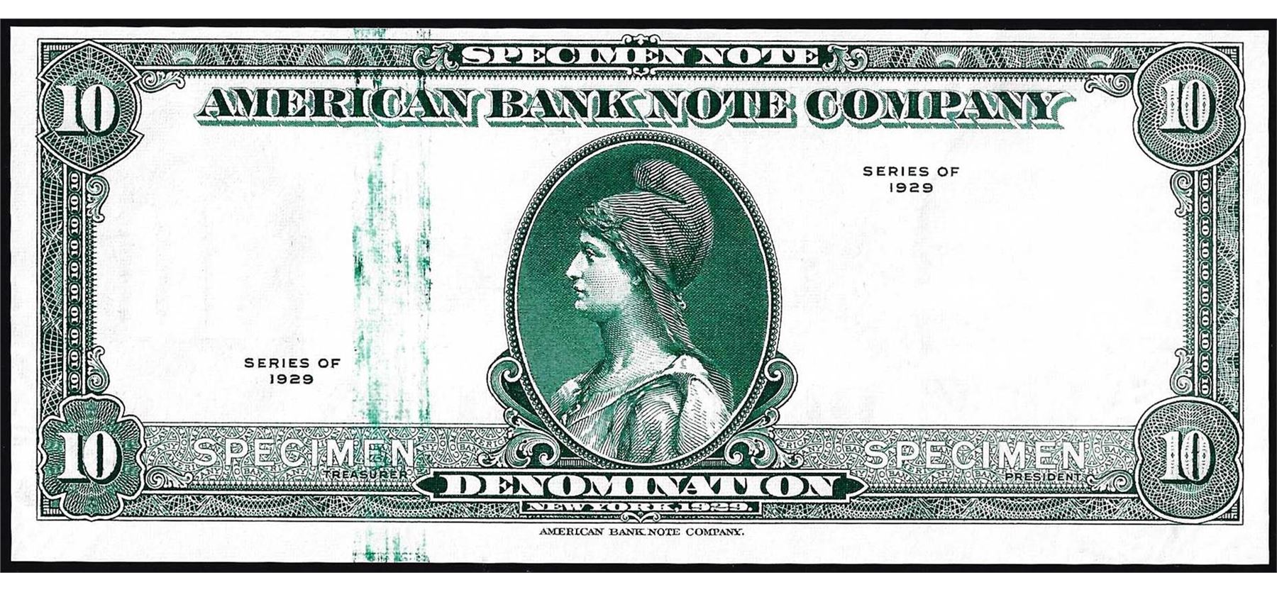 One 1929 Ten Unit American Bank Note Company Test Note.