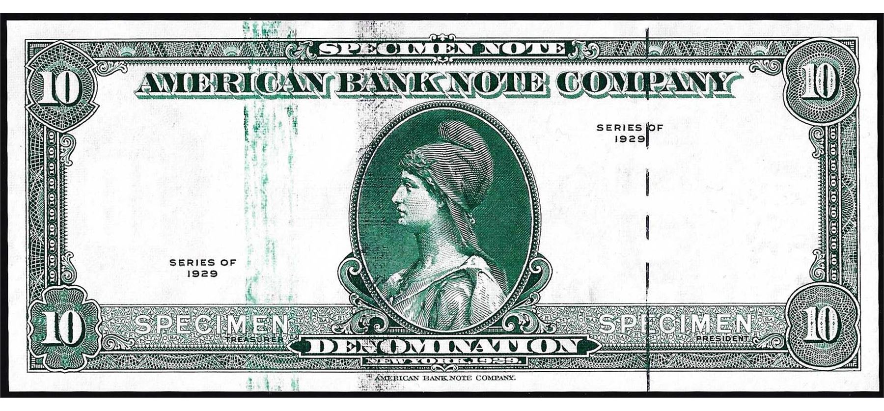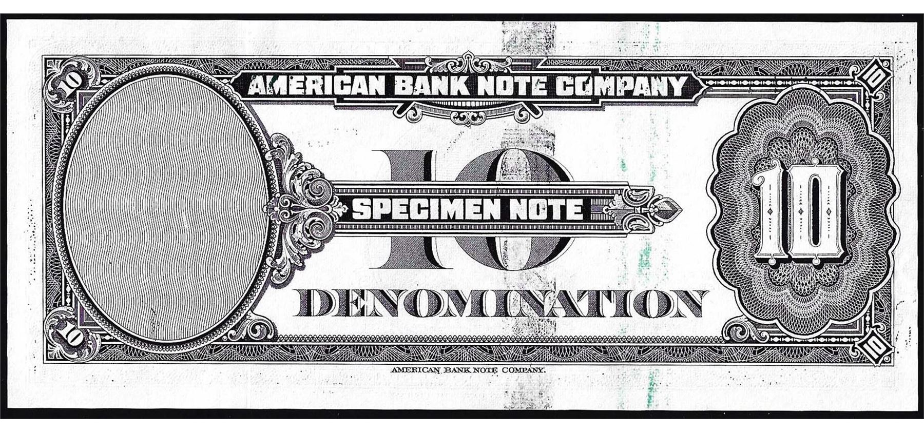 One 1929 Ten Unit American Bank Note Company Test Note.