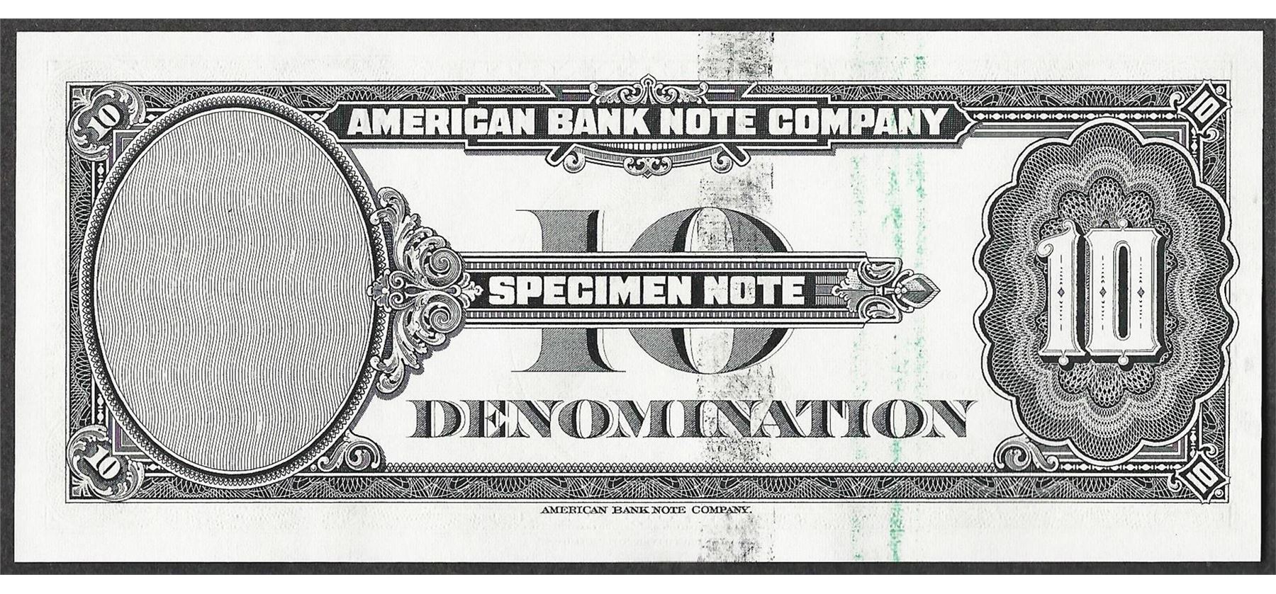 1929 Ten Unit American Bank Note Test Note As Made Ink Smear ERROR