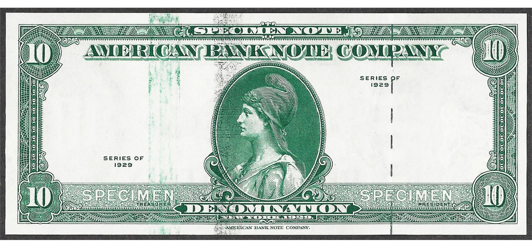 1929 Ten Unit American Bank Note Test Note As Made Ink Smear ERROR