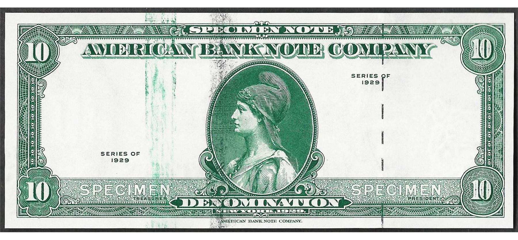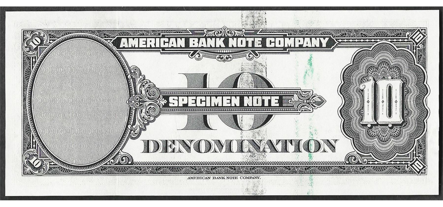 1929 Ten Unit American Bank Note Test Note As Made Ink Smear ERROR