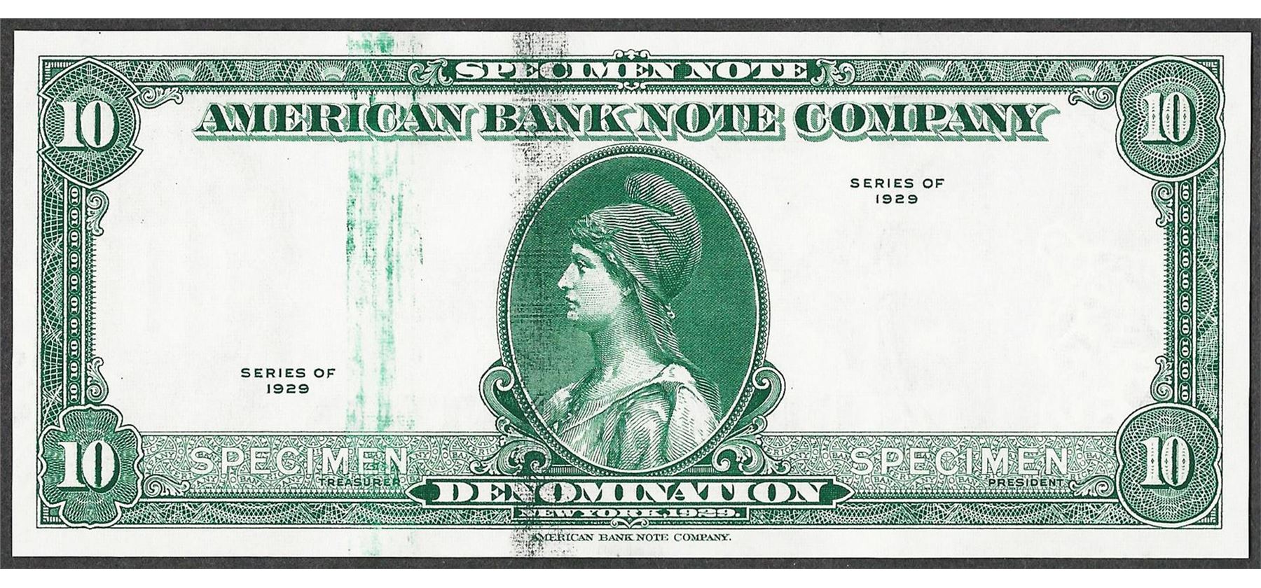 One 1929 Ten Unit American Bank Note Test Note As Made Ink Smear ERROR.