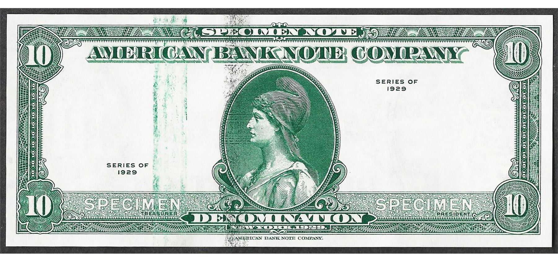 One 1929 Ten Unit American Bank Note Test Note As Made Ink Smear ERROR.