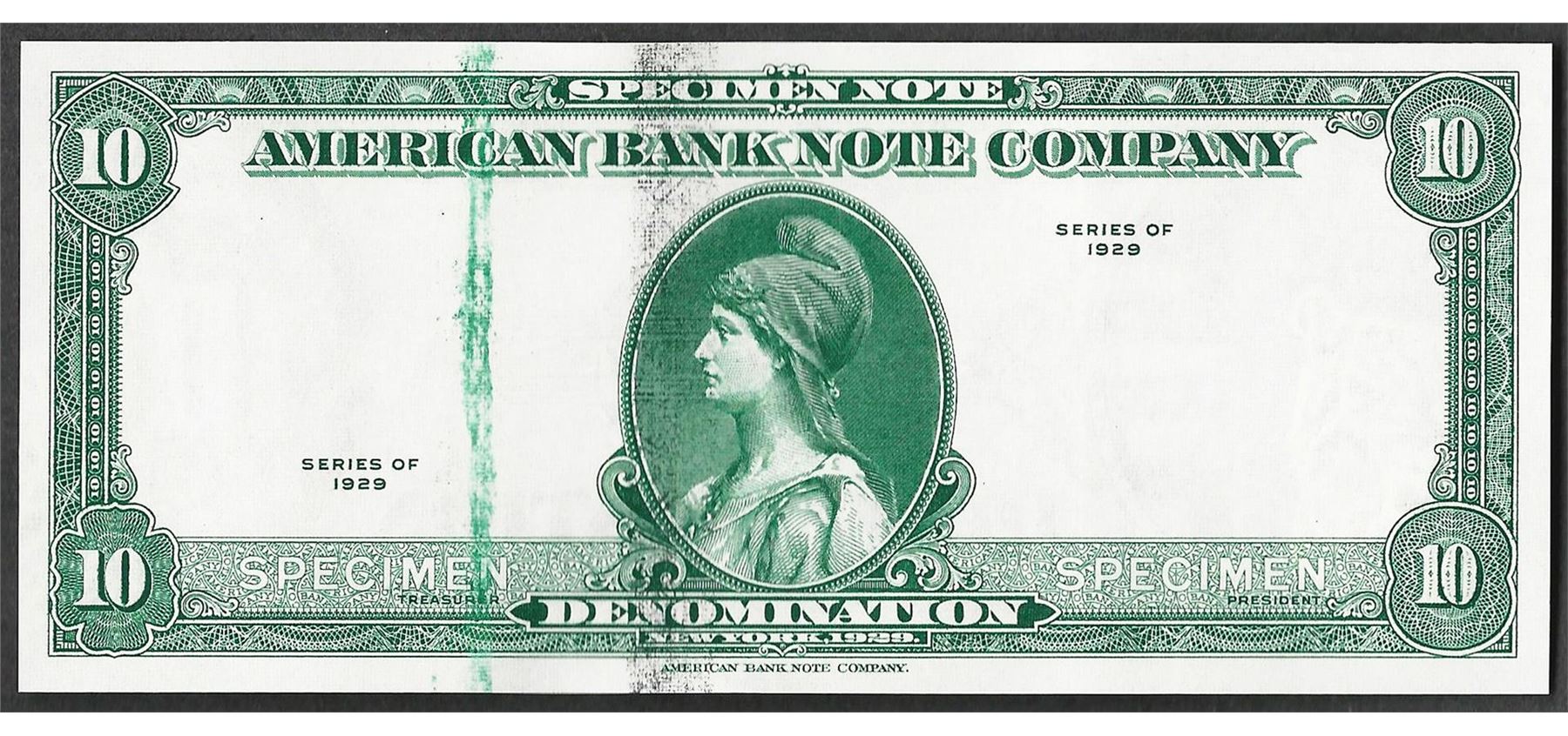 One 1929 Ten Unit American Bank Note Test Note As Made Ink Smear ERROR.