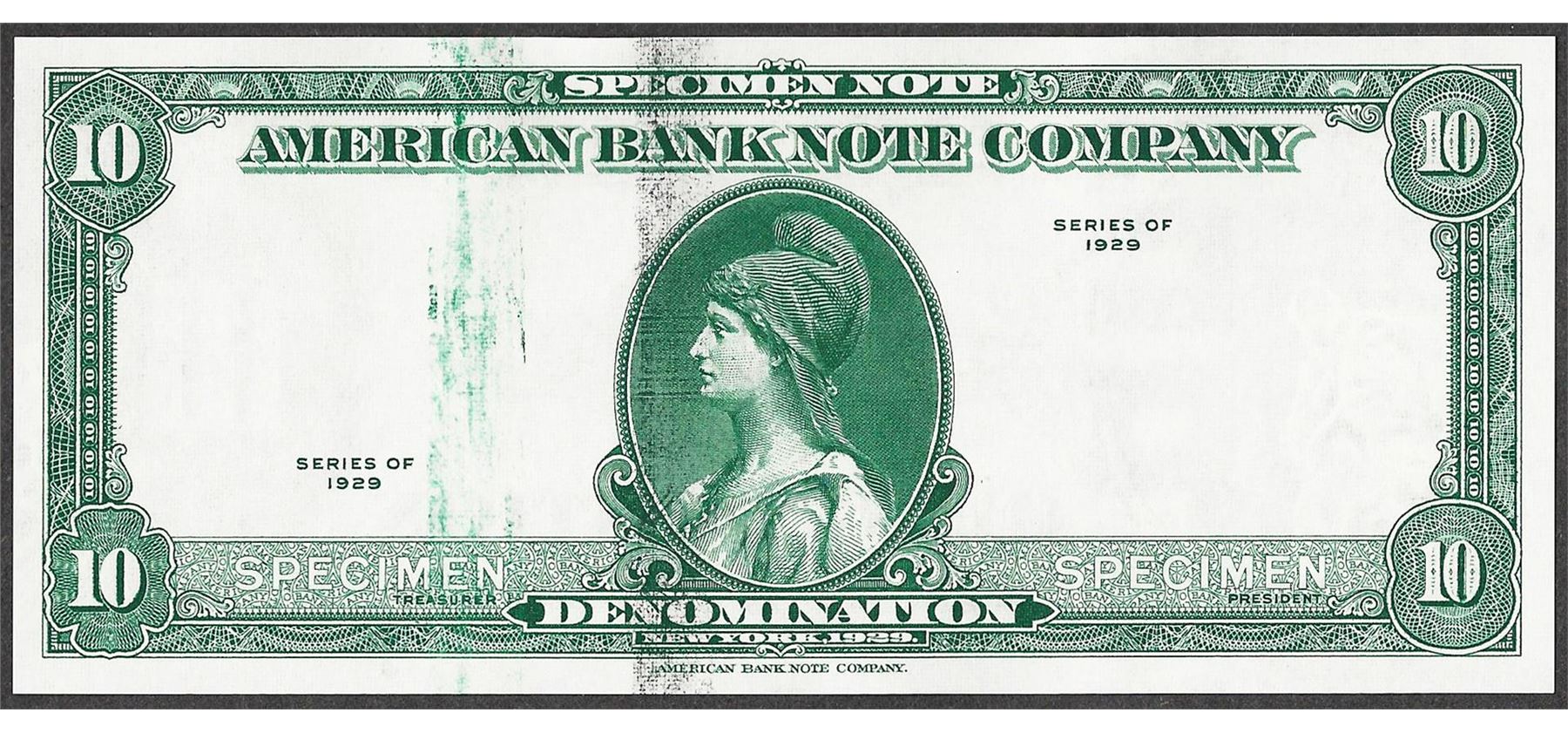 One 1929 Ten Unit American Bank Note Test Note As Made Ink Smear ERROR.