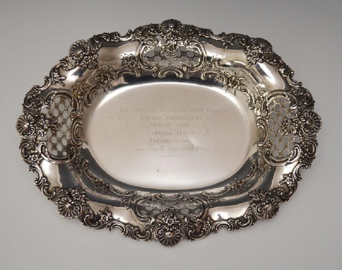 NY Produce Exchange Golf Club Spring Tournament May 16, 1929 Special Prize Presented by Charles E. Halsted Pres. Won By (Blank). Measures 1.75" tall x 14.75" long x 11.75" wide. Gross weight is 971 grams.