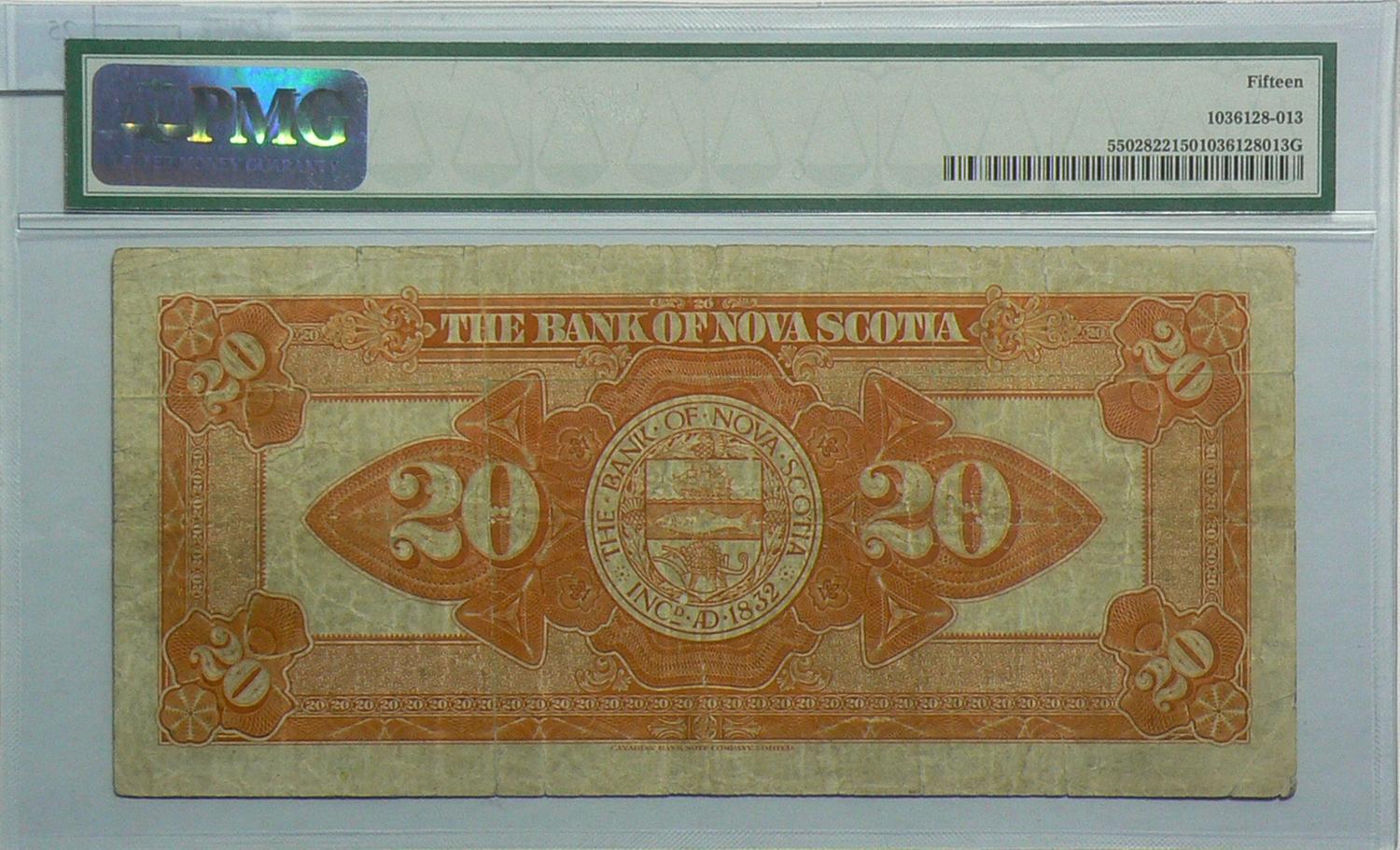 1929 Twenty Dollars Bank of Nova Scotia, 550-28-22, PMG F-15, McLoed Moore, Letter A, serial 15657