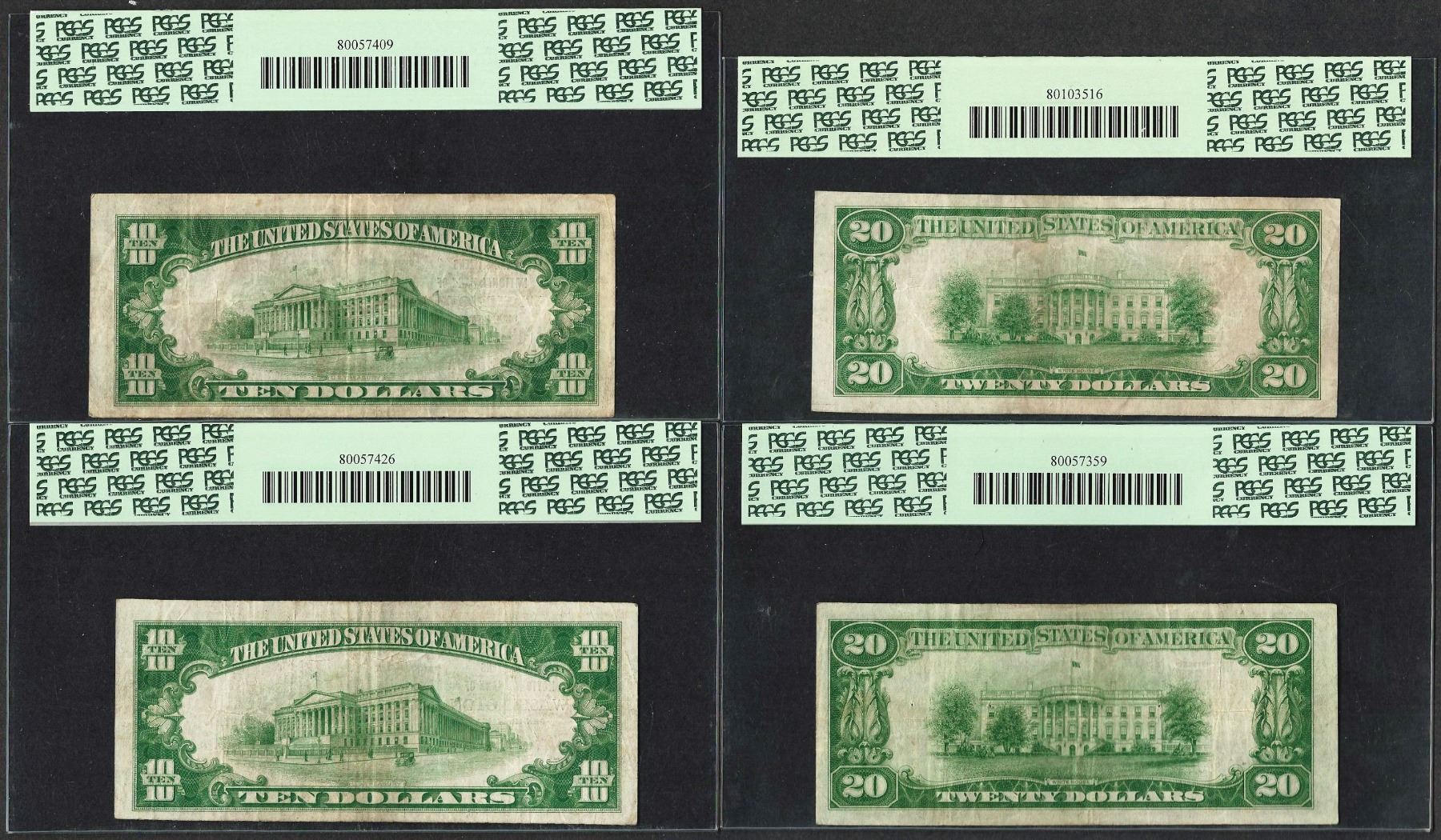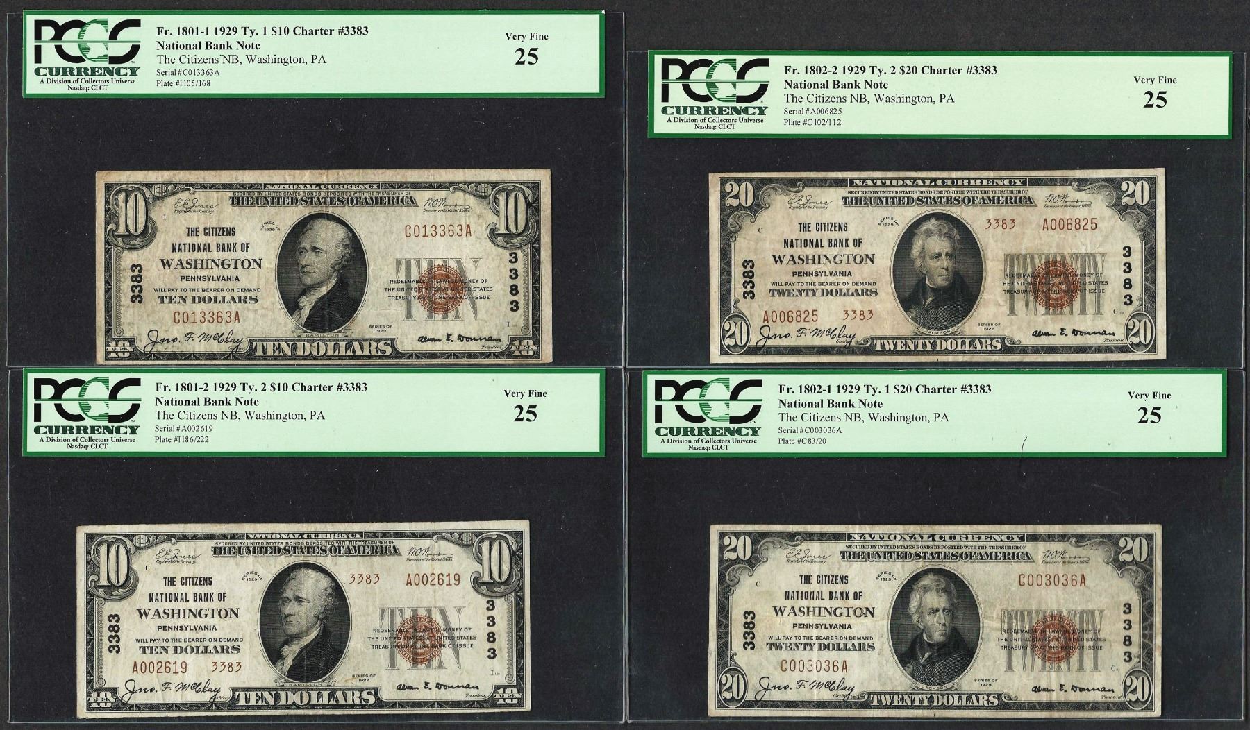 1929 Ty. 1/ 2 $10/20 Citizens NB Washington, PA National Currency Notes PCGS VF25 Lot