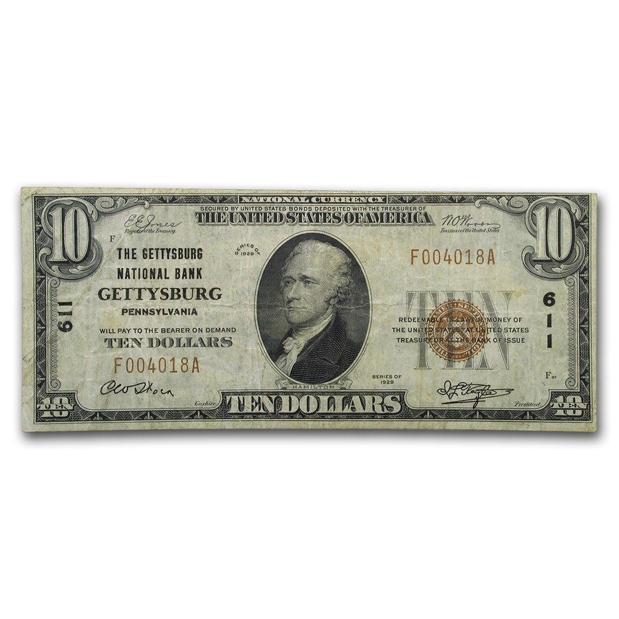 1929 Type 1 $10 Gettysburg, PA VF (CH#611)