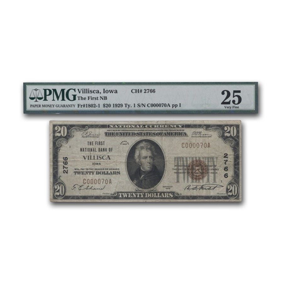 1929 Type 1 $20 Villisca, Iowa VF-25 PMG (CH#2766)