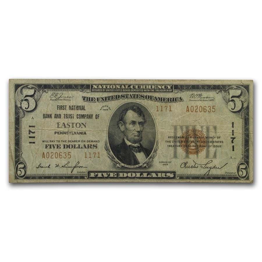 1929 Type 2 $5.00 Easton, PA Fine (CH#1171)