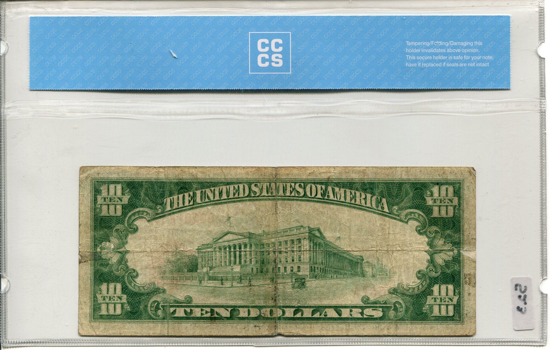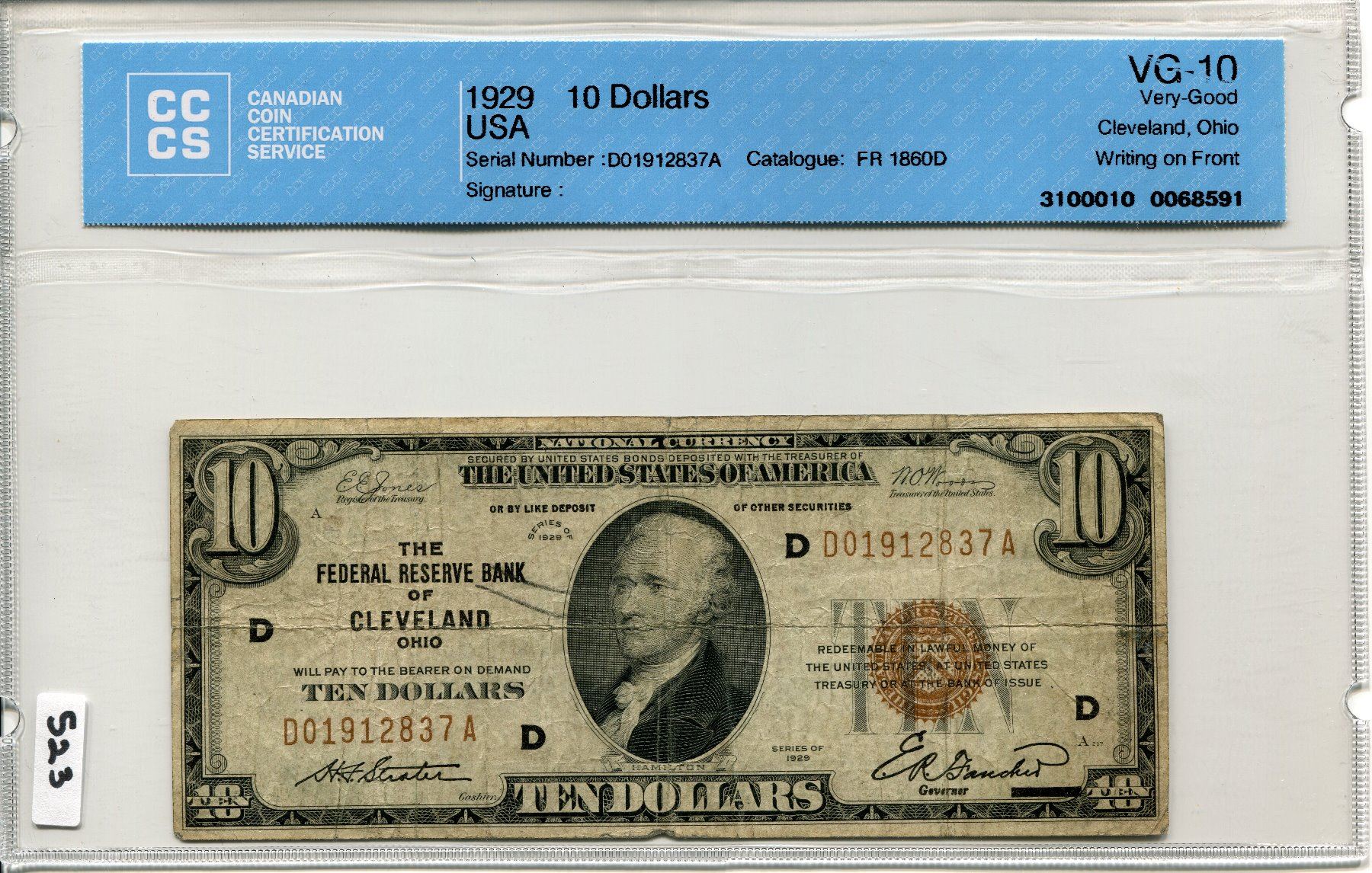 1929 US $10 DOLLAR BILL CNDN COIN CERT