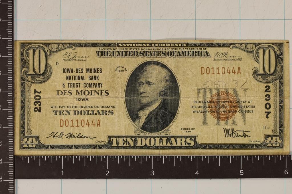1929 US $10 NATIONAL CURRENCY DES MOINES, IOWA
