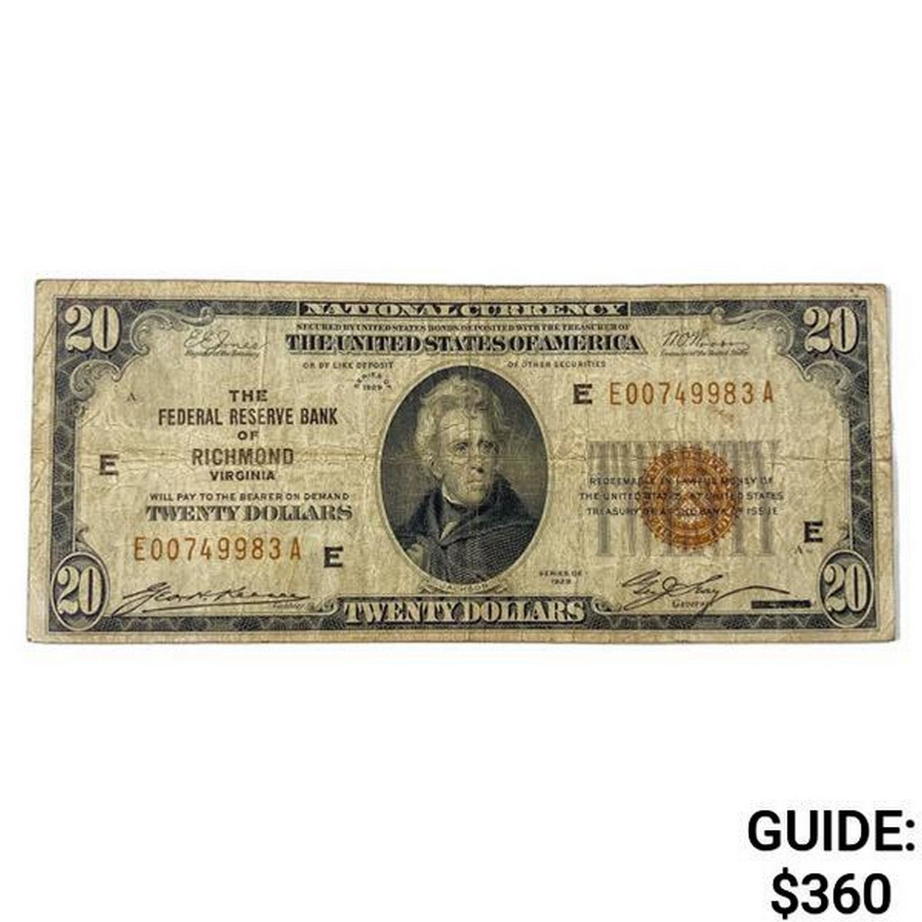 1929 US Bank of Richmond, VA $20 Fed Res Note