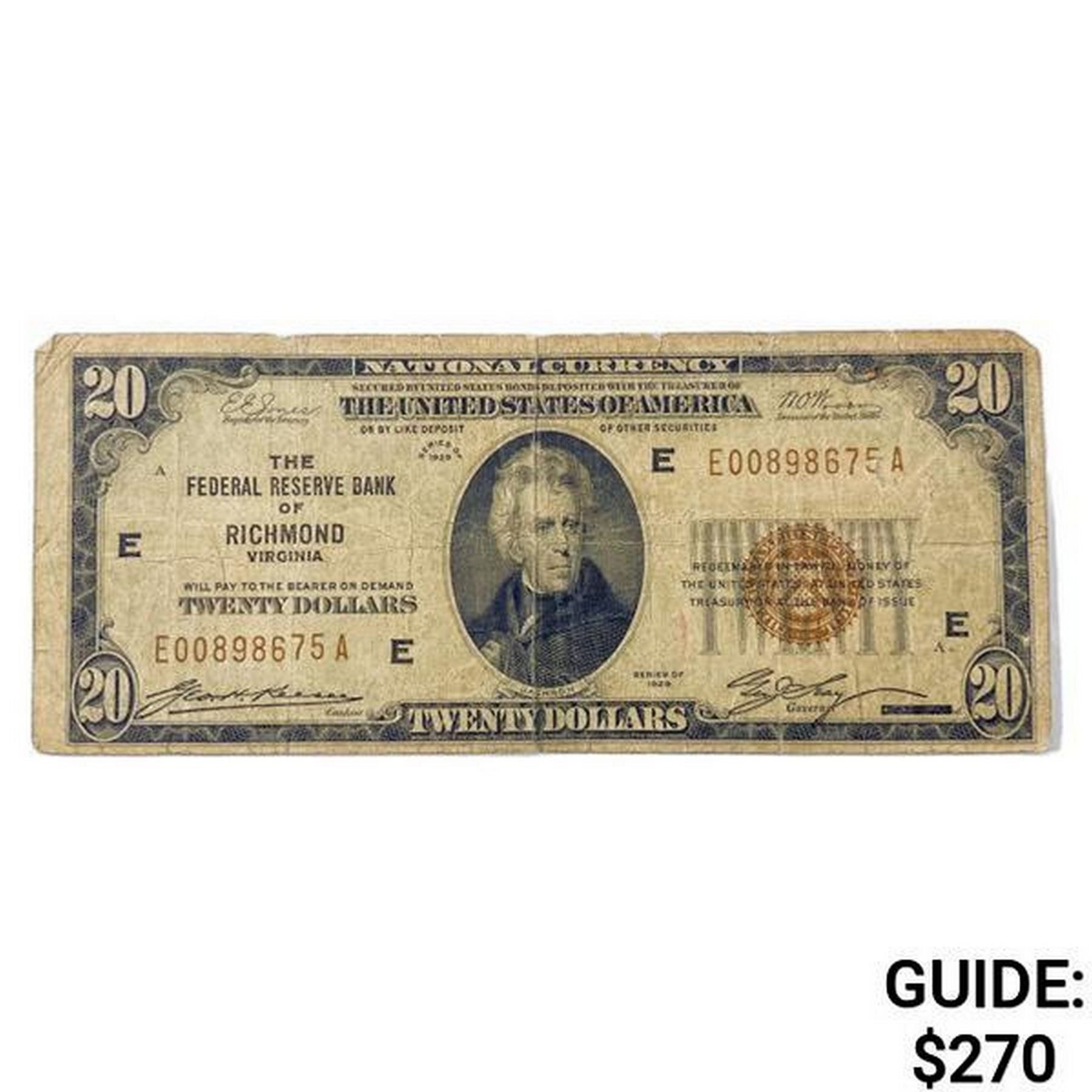 1929 US Bank of Richmond, VA $20 Fed Res Note