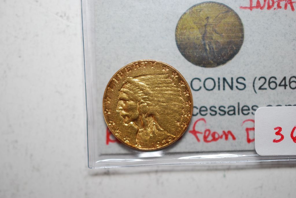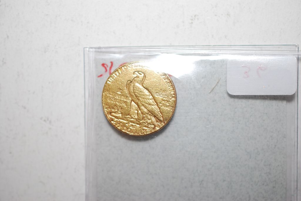 1929 US Indian Chief $2 1/2 Gold Coin; Removed From Bezel; EST. $235-275
