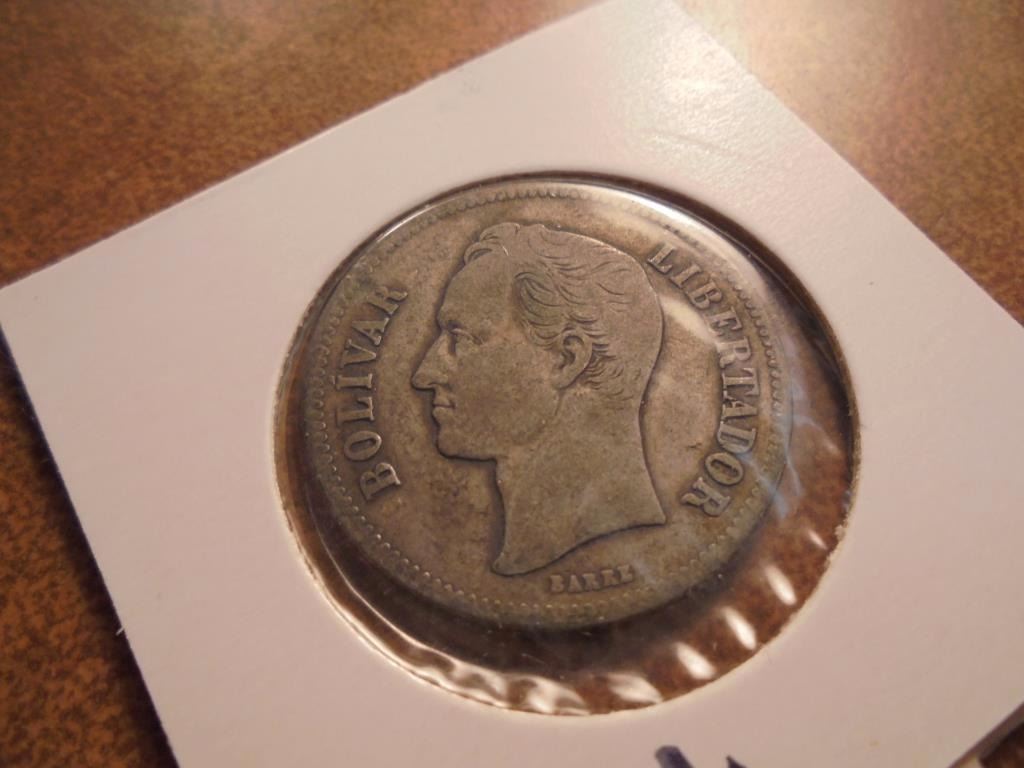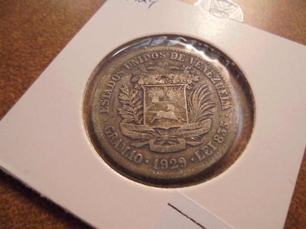 1929 VENEZUELA SILVER 2 BOLIVARS