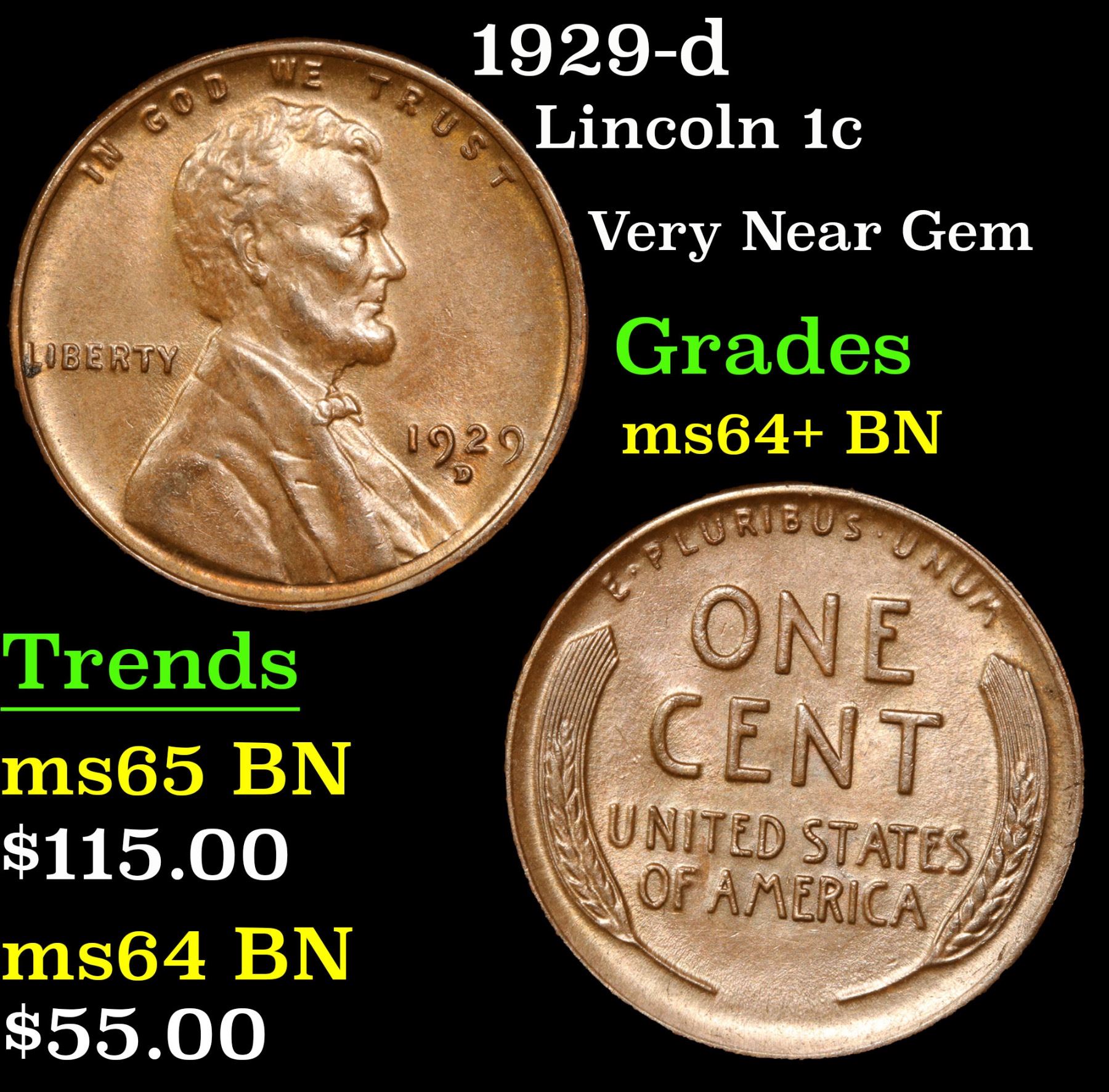 1929-d Lincoln Cent 1c Grades Choice+ Unc BN. Very Near Gem