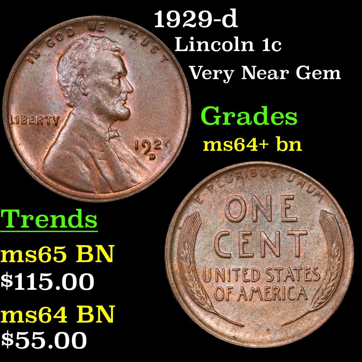 1929-d . Very Near Gem Lincoln Cent 1c Grades Choice+ Unc BN.