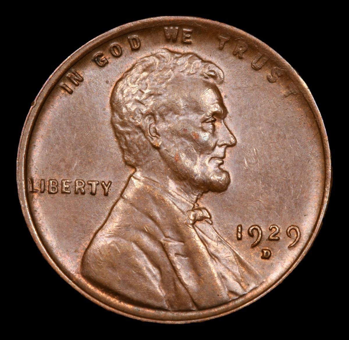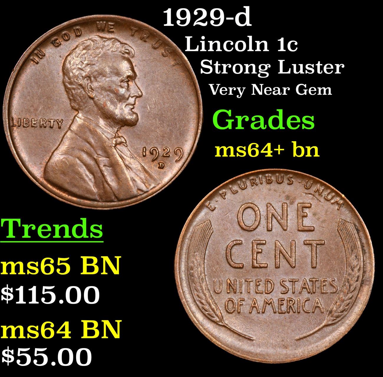 1929-d Strong Luster Very Near Gem Lincoln Cent 1c Grades Choice+ Unc BN.