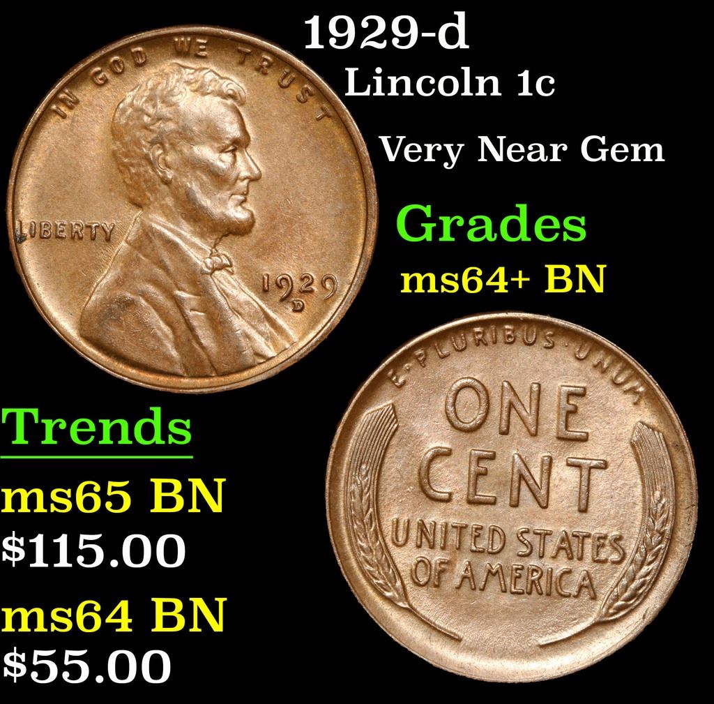 1929-d . Very Near Gem Lincoln Cent 1c Grades Choice+ Unc BN.