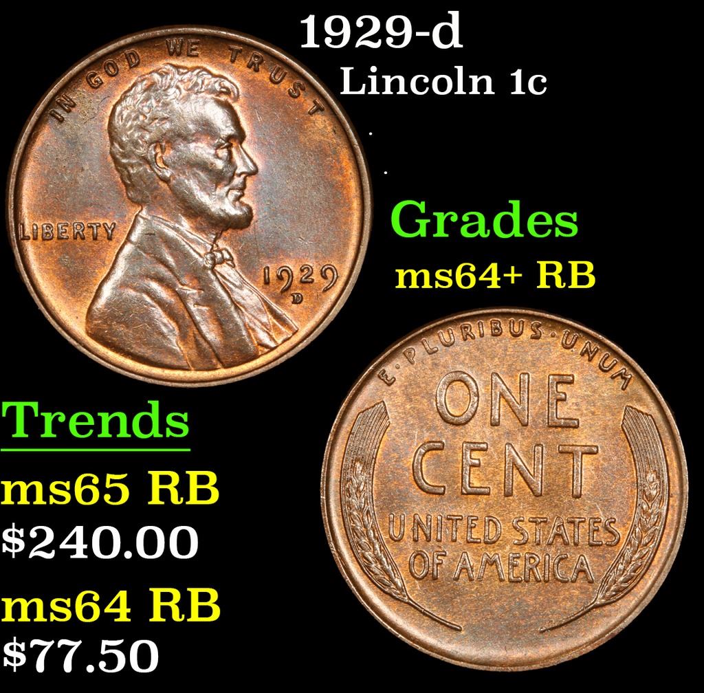 1929-d . Very Near Gem Lincoln Cent 1c Grades Choice+ Unc RB.