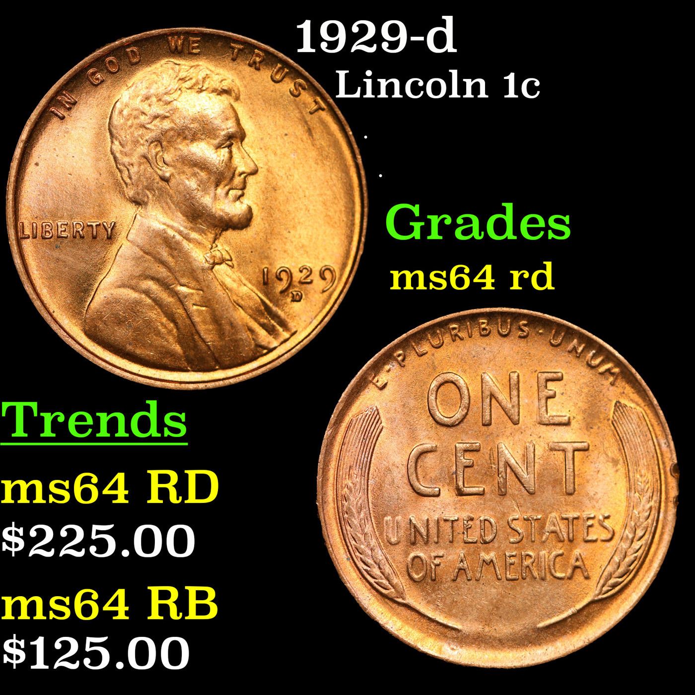 1929-d Lincoln Cent 1c Grades Choice Unc RD.
