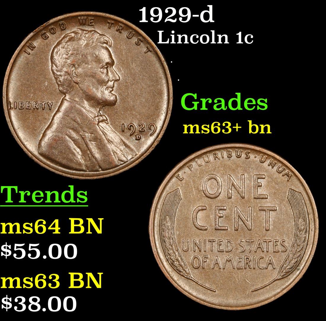1929-d . . Lincoln Cent 1c Grades Select+ Unc BN.