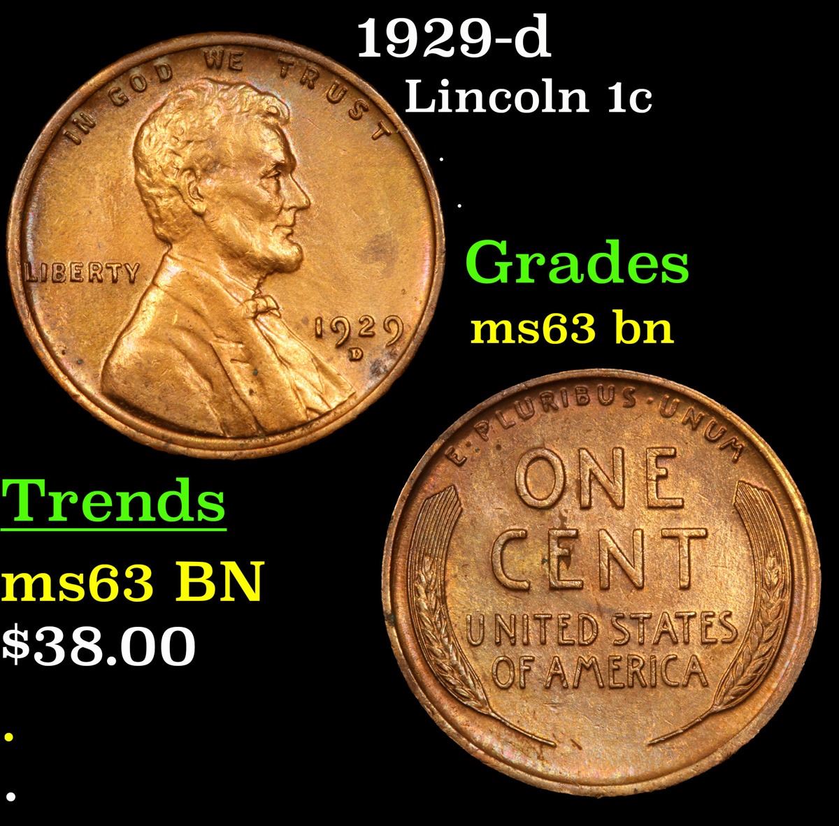 1929-d Lincoln Cent 1c Grades Select Unc BN.